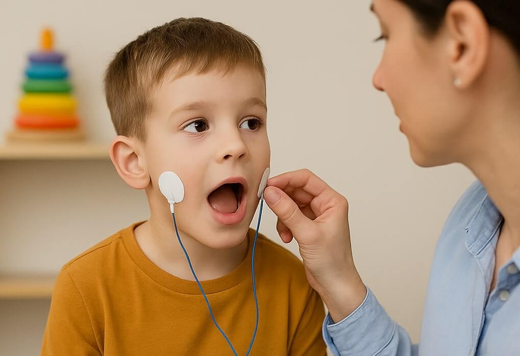 Elektrostymulacja to nowoczesna metoda wspomagająca terapię logopedyczną, szczególnie skuteczna w pracy nad poprawą napięcia mięśniowego w obrębie twarzy, języka i krtani. Polega na precyzyjnym oddziaływaniu impulsami elektrycznymi o niskim natężeniu na mięśnie odpowiedzialne za mowę, połykanie i mimikę.
