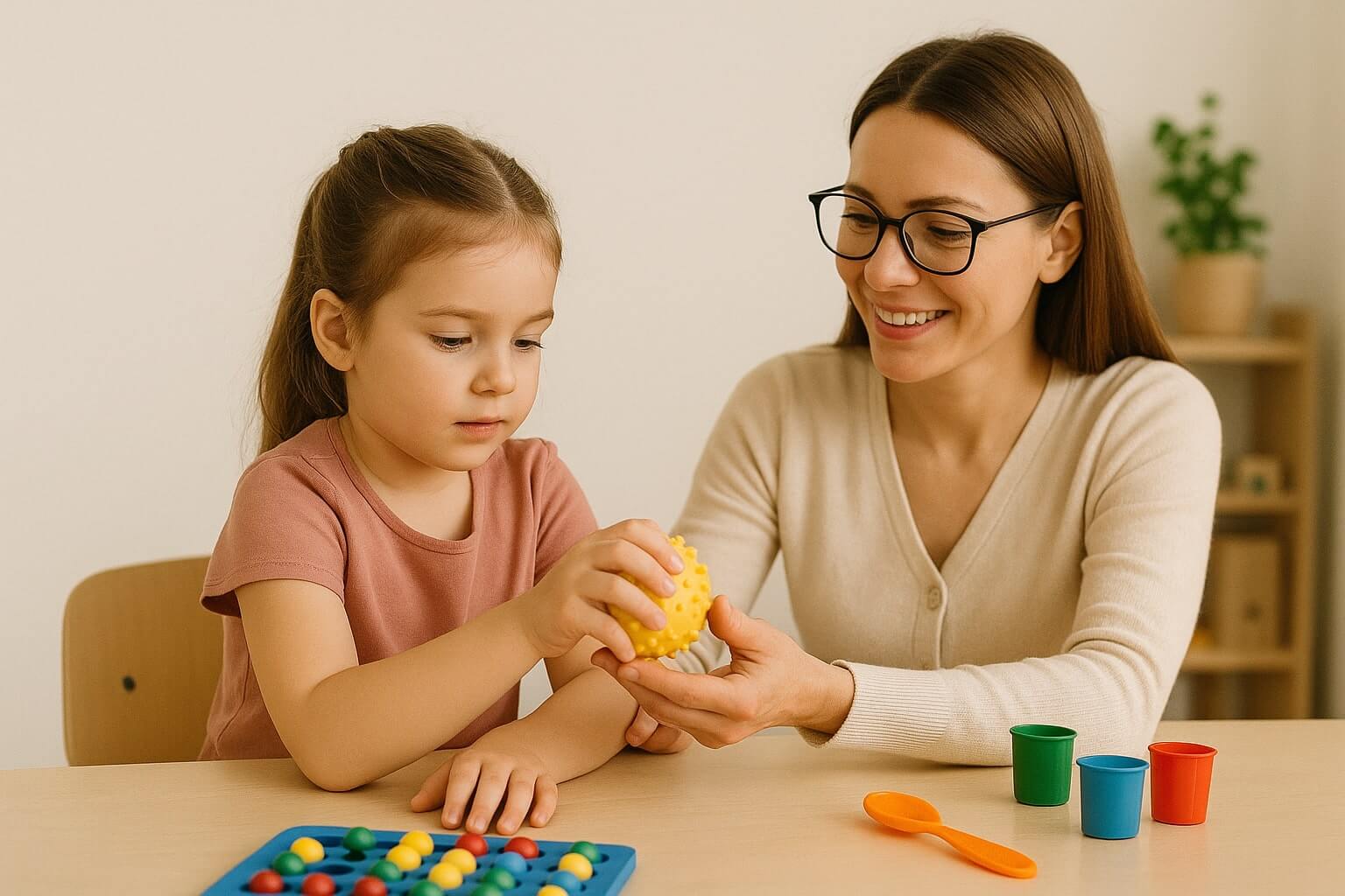 Terapia ręki to zajęcia wspomagające rozwój sprawności manualnej, siły i precyzji dłoni oraz koordynacji wzrokowo-ruchowej. Skierowana jest do dzieci, które mają trudności z pisaniem, rysowaniem, zapinaniem guzików czy wykonywaniem innych codziennych czynności wymagających precyzyjnych ruchów.